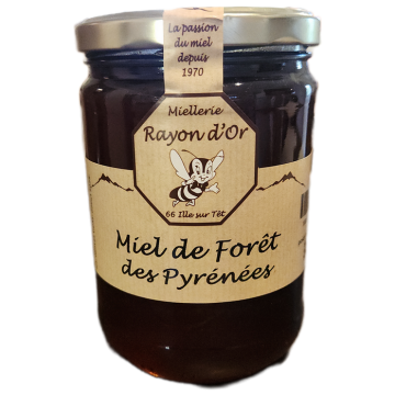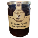 Le miel de forêt 750g est composé de miel et de miellats récolté dans les forêts des contreforts des Pyrénées. Ce miel contient beaucoup de miellat de chêne vert, en d'autres termes il est typique de notre végétation Méditerranéenne. Sans être agressifs ses arômes n'en sont pas moins très marqués, ils rappellent un peu le pain d'épices. Son acidité est sensible, aucune amertume.