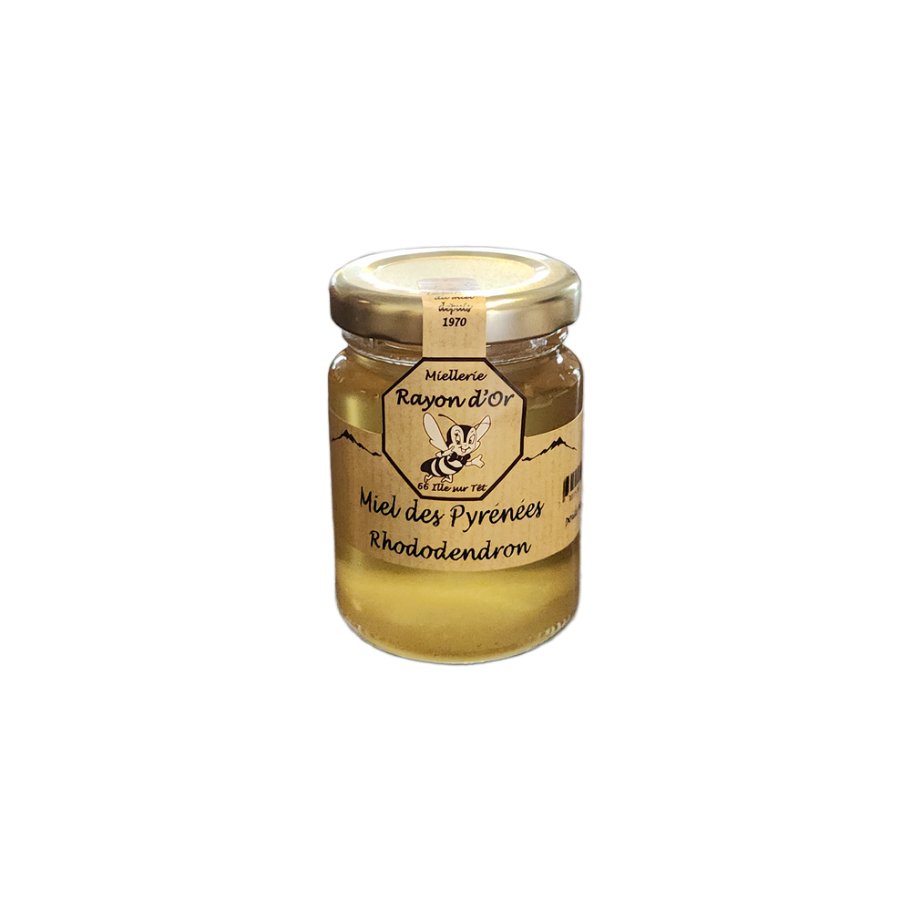 Ce miel de rhododendron de montagne a été récolté dans les Pyrénées à plus de 1500 mètres d'altitude. Il est un peu coloré par rapport au standard (présence d'autres fleurs butinées, sapin en particulier). Il reste un miel très fin au notes florales, légèrement boisés.